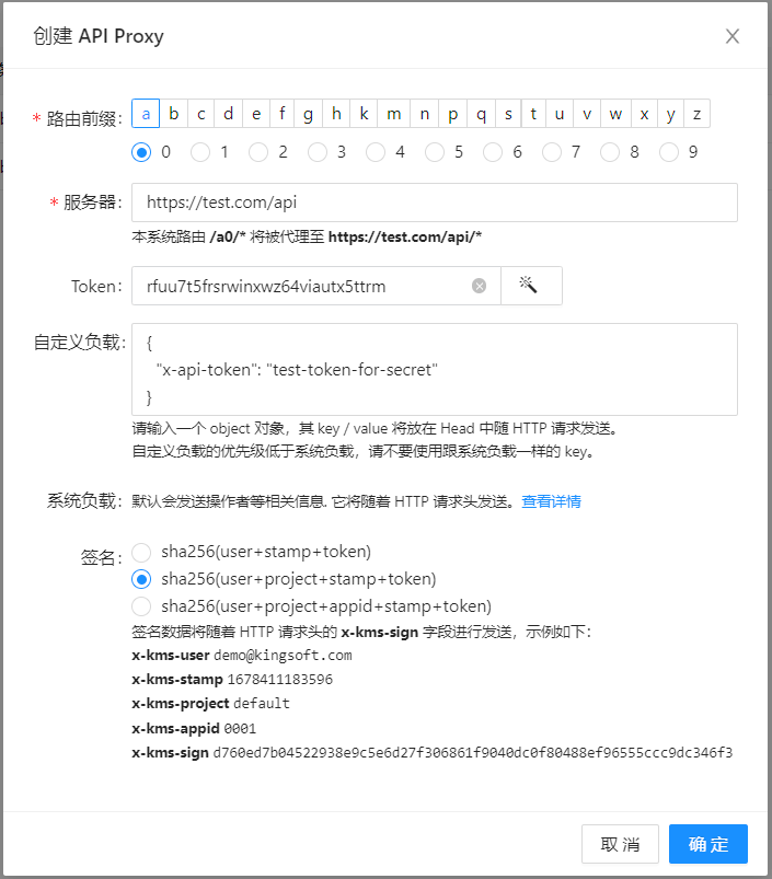 x-api-token 自定义 payload 字段(可选)上述 x-kms-sign 签名数据,有三种可选签名方式: