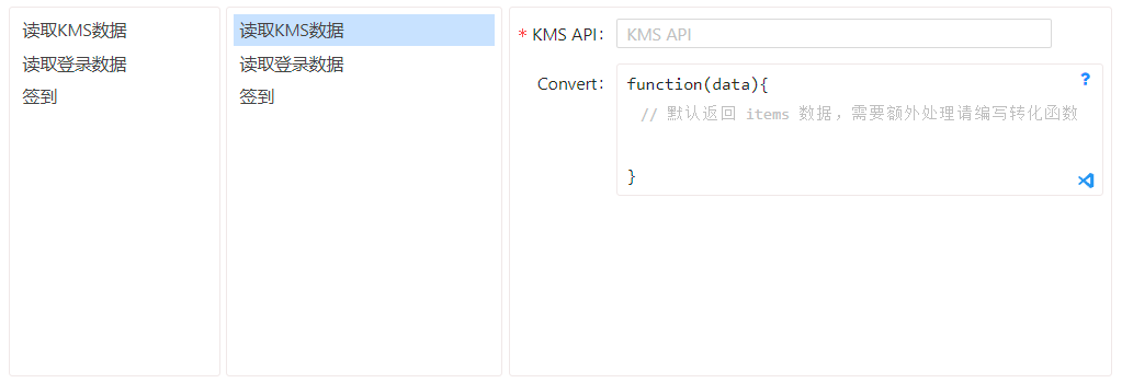 [{ label, value }...]格式数据,任何错误都会被忽略; - 如果使用的是 KMS DSI 的数据,请使用